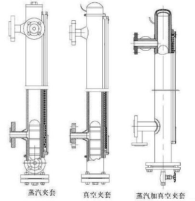 一般夾套保溫都是把保溫裝置按在液位計主體管道的周圍,分為兩種方式:一種是電伴熱(也叫電加熱)裝置,通過纏繞在夾套磁翻板液位計主管道上的電阻絲對管道進行加熱使管道內(nèi)的液體處在冰點以上,保證罐體內(nèi)的液體不會因為溫度過低而結(jié)冰;另一種是蒸汽夾套保溫,把一空夾層固定在主體管道的外圍,對空夾層里面輸入溫度高的蒸汽,利用高溫蒸汽對主體管道內(nèi)部的介質(zhì)進行熱力傳遞,達到保溫作用。