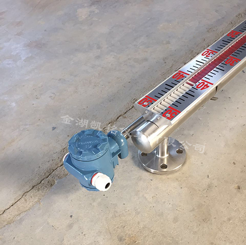 在浮子液位計上安裝變送器,通過浮子上下移動,經(jīng)磁耦合作用使導(dǎo)桿內(nèi)測量元件依次動作,獲得電阻信號變化,轉(zhuǎn)換成0~10mA或4~20mA的標(biāo)準信號輸出,與顯示儀表或計算機連接,達到遠傳目的。