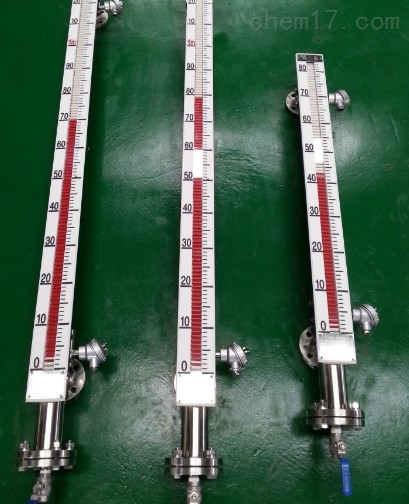 根據(jù)浮力原理,浮子在測量管內(nèi)隨液位的升降而上、下移動,浮子內(nèi)的永久磁鋼通過耦合作用,驅(qū)動紅、白色翻柱翻轉(zhuǎn)180°,液位上升時翻柱由白色轉(zhuǎn)為紅色,下降時由紅色轉(zhuǎn)為白色,從而實現(xiàn)液位指示。