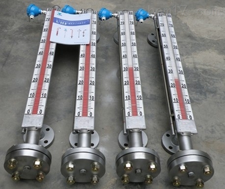 UHZ系列磁翻板液位計是我公司按原化學(xué)工業(yè)部行業(yè)標(biāo)準(zhǔn)HG/T2742-1995《磁性浮子式液位計技術(shù)條件》并參照HG/T21284-95《磁性液位計》開發(fā)生產(chǎn)的產(chǎn)品。由于其跟液位同步上升的磁浮子通過指示器上的磁翻柱耦合翻轉(zhuǎn)來顯示液位,顯示器不直接與容器連通,所以可以制成防泄漏、耐高壓、及腐蝕條件下測量的液位計。可靠性好,使用安全、指示醒目、測量范圍寬、安全方便??朔瞬AЧ埽ò澹┦揭何挥嬍芨叩蜏貏∽円灼扑榧澳蛪旱偷娜秉c。