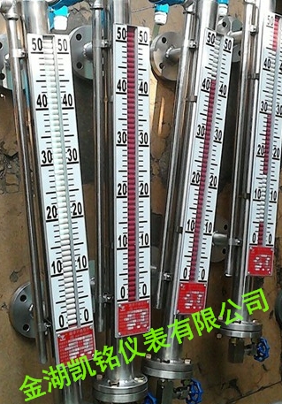 磁翻板液位計是本公司引進、吸收國外同類產品,并加以吸收、消化、提高,按原化學工業(yè)部頒布的磁性液位計標準T21584-95研制生產的產品??捎糜诟鞣N塔、罐槽、球形容器和鍋爐等設備的介質液位檢測。該系列磁性液位計可以做到高密封,防泄漏和適應高壓高溫、腐蝕性條件下的液位測量,具有可靠的安全性,它彌補了玻璃板(管)液位計指示不清晰,易破碎的不足,不受高、低溫度劇變的影響,不需多組液位計的組合。全過程測量無盲區(qū),顯示醒目、讀數(shù)直觀,且測量范圍大。特別是現(xiàn)場指示部分,由于不與液體介質直接接觸,所以對高溫、高壓、高粘度、有毒有害、強腐蝕性介質,更顯其優(yōu)越性。因此,它比傳統(tǒng)的玻璃管,板式液位計具有更高的可靠性、安全性、先進性、實用性。