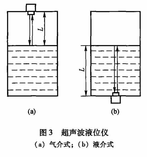 超聲波液位儀(見圖3)工作原理是由超聲波換能器(探頭)發(fā)出高頻脈沖聲波,遇到被測(cè)物位(物料)表面被反射折回,反射回波被換能器接收轉(zhuǎn)換成電信號(hào)。