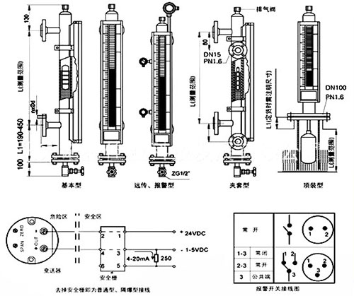 傳感器的作用是采樣液位高低位置并轉(zhuǎn)換成標準信號傳送至控制室,傳感器實際由干簧管和電阻組成。當浮子內(nèi)磁鋼位置變化后,磁場通過器壁帶動傳感器內(nèi)干簧管觸點吸合。干簧管吸合的位置決定回路的阻抗大小,干簧管的通常位置為10mm1組?;芈返拇笮≌门c液位的高低成正比,這樣*后由置于傳感器外殼內(nèi)的變送器將電阻信號轉(zhuǎn)換成標準的電流信號,送至控制室。具體結(jié)構(gòu)、原理圖見圖2。
