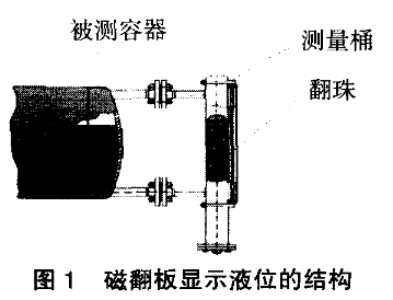 磁翻板是顯示液位的部分(見圖1)。磁翻板內(nèi)的翻珠內(nèi)裝有柱狀的磁鋼,而所有的翻珠均勻布置于鋁制的卡槽內(nèi),當液位計中液位上升時,由于磁鋼受浮子內(nèi)磁場的影響帶動翻珠由白色翻轉(zhuǎn)為紅色;反之液位下降時,翻珠由紅色翻轉(zhuǎn)為白色。這樣磁翻板在無需任何電源的情況下就可以反應(yīng)出容器內(nèi)液位的變化。