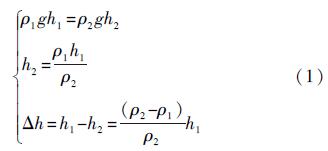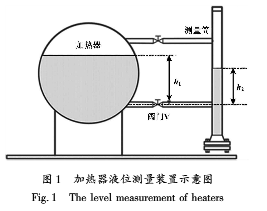 假設(shè)一個加熱器的液位測量裝置如圖1所示,由于側(cè)裝磁翻板液位計中的水溫低于加熱器中的水溫,水溫下降會導(dǎo)致水的密度上升,水的密度上升會產(chǎn)生兩個相反的作用: