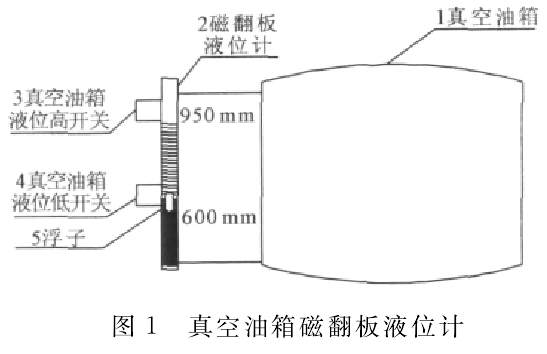 4月18日24:00,真空油箱油位低信號發(fā)出,密封油真空泵磁翻板無液位顯示,檢查確認(rèn)浮子已在液位筒底部。此時真空油箱實際油位950mm。
