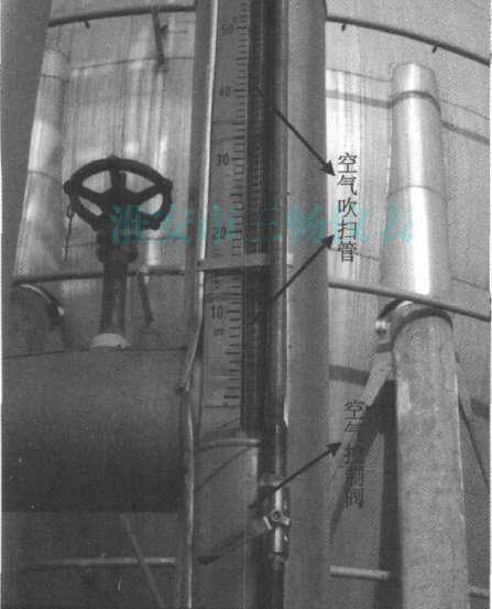 為了保證乙烯球罐安全穩(wěn)定運(yùn)行,投用初期磁翻板液面計(jì)結(jié)冰就很嚴(yán)重,開(kāi)始以為是由于施工時(shí)保冷材料沒(méi)有安裝好、保冷材料的厚度不夠等原因造成的,因此對(duì)保冷材料全部重新安裝并增加了保冷材料的厚度,但效果不明顯。后又組織崗位操作工對(duì)耐酸堿磁翻板液位計(jì)上的冰定期進(jìn)行人工清理,由于乙烯球罐容積大(1500m³),液位計(jì)長(zhǎng)約12米,清理難度非常大,在清除作業(yè)過(guò)程中涉及高空等危險(xiǎn)作業(yè),增加了員工的工作危險(xiǎn)性和勞動(dòng)強(qiáng)度,而且經(jīng)過(guò)人工清理的液位計(jì)在運(yùn)行3~4小時(shí)后,又開(kāi)始掛霜結(jié)冰,運(yùn)行周期太短。另外每次在清除結(jié)冰的過(guò)程中,都會(huì)對(duì)磁翻板液面計(jì)和閥座有所損傷,*終可導(dǎo)致磁翻板液面計(jì)損壞報(bào)廢。后來(lái)又嘗試切斷液面計(jì)根部閥切斷,采用自然化冰的方式來(lái)清除掛冰,這樣雖然減小了操作工的勞動(dòng)強(qiáng)度,但這種辦法除冰時(shí)間太長(zhǎng),對(duì)安全生產(chǎn)不利。為了徹底解決磁翻板掛冰的現(xiàn)象,經(jīng)過(guò)反復(fù)論證,技術(shù)人員提出用工廠空氣進(jìn)行吹掃的方案并在其中一具乙烯球罐上進(jìn)行試驗(yàn)。通過(guò)試驗(yàn)發(fā)現(xiàn)用工廠空氣連續(xù)吹掃掛冰的液位計(jì),基本能夠徹底解決耐酸堿磁翻板液位計(jì)掛冰。
