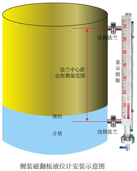 刻度板隨著液位上升而上升并翻動(dòng)顯示刻度,但是翻柱有翻動(dòng)為紅色的,也有不翻的為白色(不明這里的,可以看下白酒儲(chǔ)罐液位計(jì)原理);