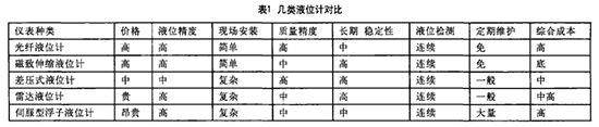 對市場中應(yīng)用較為廣泛的幾類液位計綜合對比。