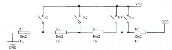傳感器部分由串聯(lián)的電阻構(gòu)成,電阻一端接電源。另一點(diǎn)接地,每個電阻分得的電壓是