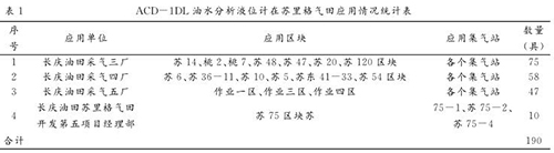 在試驗(yàn)成功的基礎(chǔ)上,蘇里格氣田對(duì) ACD-1DL 油水分析液位計(jì)進(jìn)行了全面推廣,截止到 2014年 11 月底,共在 87 座集氣站應(yīng)用 190 臺(tái),各單位應(yīng)用情況統(tǒng)計(jì)見(jiàn)表 1 。