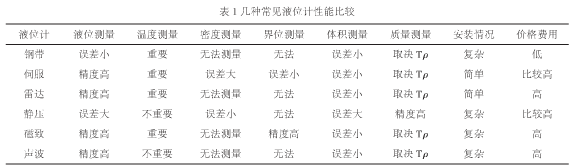 1、常見(jiàn)液位計(jì)的性能特點(diǎn)