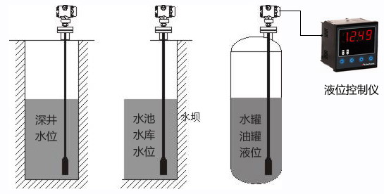 液位計(jì)應(yīng)安裝在靜止的深井、水池中時(shí),通常把內(nèi)徑Φ45mm左右的鋼管(不同高度打若干小孔,以便水通暢進(jìn)入管內(nèi))固定于水中,然后將靜壓投入式液位計(jì)放入鋼管中即可使用。變送器的安裝方向?yàn)榇怪?,投入式安裝位置應(yīng)遠(yuǎn)離液體出入口及攪拌器。在有較大振動(dòng)的使用場合,可在變送器上纏繞鋼絲,利用鋼絲減震,以免拉斷電纜線。測量流動(dòng)或有攪拌的液體的液位時(shí),通常把內(nèi)徑Φ45mm左右的鋼管(在液體流向的反面不同高度打若干小孔,以便水通暢進(jìn)入管內(nèi))固定于水中,然后將靜壓投入式液位計(jì)放入鋼管中即可使用。 濕度傳感器探頭 , , 不銹鋼電熱管 PT100 傳感器 , , 下圖為不同工況下的投入式液位計(jì)的安裝方式: