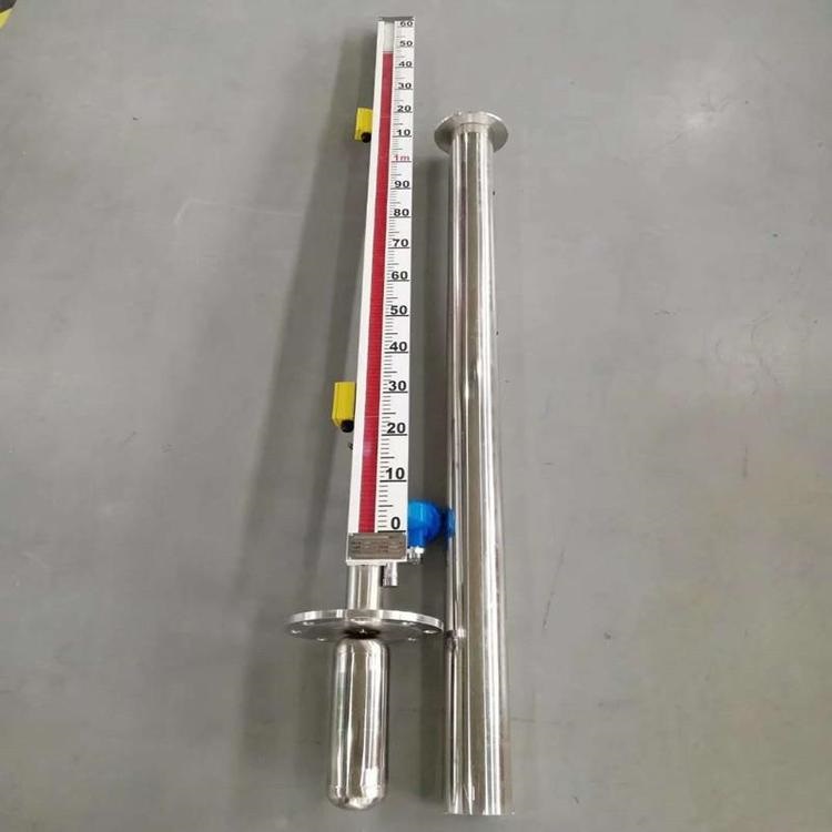 原理:根據(jù)浮力原理和磁性耦合原理而制成的,當(dāng)被測容器內(nèi)的液位上下變化時(shí)帶動(dòng)浮球,并通過與之相連的連桿上端的永久磁鋼上下移動(dòng),經(jīng)磁性藕合而使顯示器中的翻柱翻轉(zhuǎn)。當(dāng)液位上升,翻柱由白色轉(zhuǎn)為紅色,當(dāng)液位下降時(shí)翻柱由紅色轉(zhuǎn)為白色,紅白界位處就為容器內(nèi)介質(zhì)液位的實(shí)際高度,從而實(shí)現(xiàn)液位自動(dòng)跟蹤顯示。