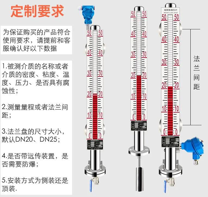 使用磁性液位計測量液位高度時,量程是關(guān)鍵的因素之一,如果無法確認具體的量程,在施工時,可能就需要對安裝位置進行調(diào)整才能滿足工況,如果量程誤差比較大,那么直接會影響測量效果。