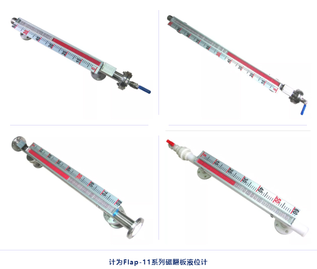 uhz磁翻板液位計是基于連通器和磁性耦合原理實現(xiàn)液位實時測量的。當被測容器中的液位升降時,浮筒內(nèi)的磁性浮子也隨之升降,浮子內(nèi)的永久磁鋼通過磁性耦合驅動浮筒外部的磁性翻片翻轉180°,翻片兩面分別涂有不同的顏色(通常為紅色和白色),以指示液位的位置。一般地,當容器內(nèi)液位上升時,翻片由白色轉變?yōu)榧t色,當容器內(nèi)液位下降時,翻片由紅色轉變?yōu)榘咨?,指示器的紅白交界處即為容器內(nèi)液位的實際高度,從而實現(xiàn)液位的準確測量。
