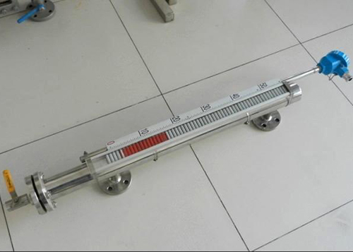 液位計(jì)根據(jù)浮力原理,浮子在測(cè)量管內(nèi)隨液位的升降而上下移動(dòng),浮子內(nèi)的永久磁鋼通過磁耦合作用,驅(qū)動(dòng)紅、白色翻柱翻轉(zhuǎn)180’液位上升時(shí),翻柱由白色轉(zhuǎn)為紅色,下降時(shí),翻柱由紅色轉(zhuǎn)為白色,從而實(shí)現(xiàn)液位的指示。