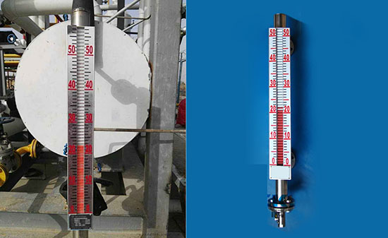 由于燒堿液位計刻度精準(zhǔn),經(jīng)濟(jì)實用,在電力、石油、化工、環(huán)保、船舶、建筑等行業(yè)有著廣泛地應(yīng)用。磁翻板液位指示器安裝在桶槽側(cè)面或頂部,用以指示和控制桶槽內(nèi)的液位,可根據(jù)需要加裝排污閥。指示器由磁性色片組成,當(dāng)容器中被測液位升降時,浮筒內(nèi)的磁性浮子也隨之升降,浮子內(nèi)的永久磁鋼通過磁性耦合驅(qū)動浮筒外部的磁性翻片翻轉(zhuǎn)180°。上升則為紅色,下降則為白色,紅白界位處即為液位的實際位置。也可在本體管上加裝磁性開關(guān)或遠(yuǎn)傳變送器,輸出開關(guān)信號或模擬量信號。燒堿液位計主要是基于連通器和磁性耦合原理實現(xiàn)液位的實時測量和顯示。